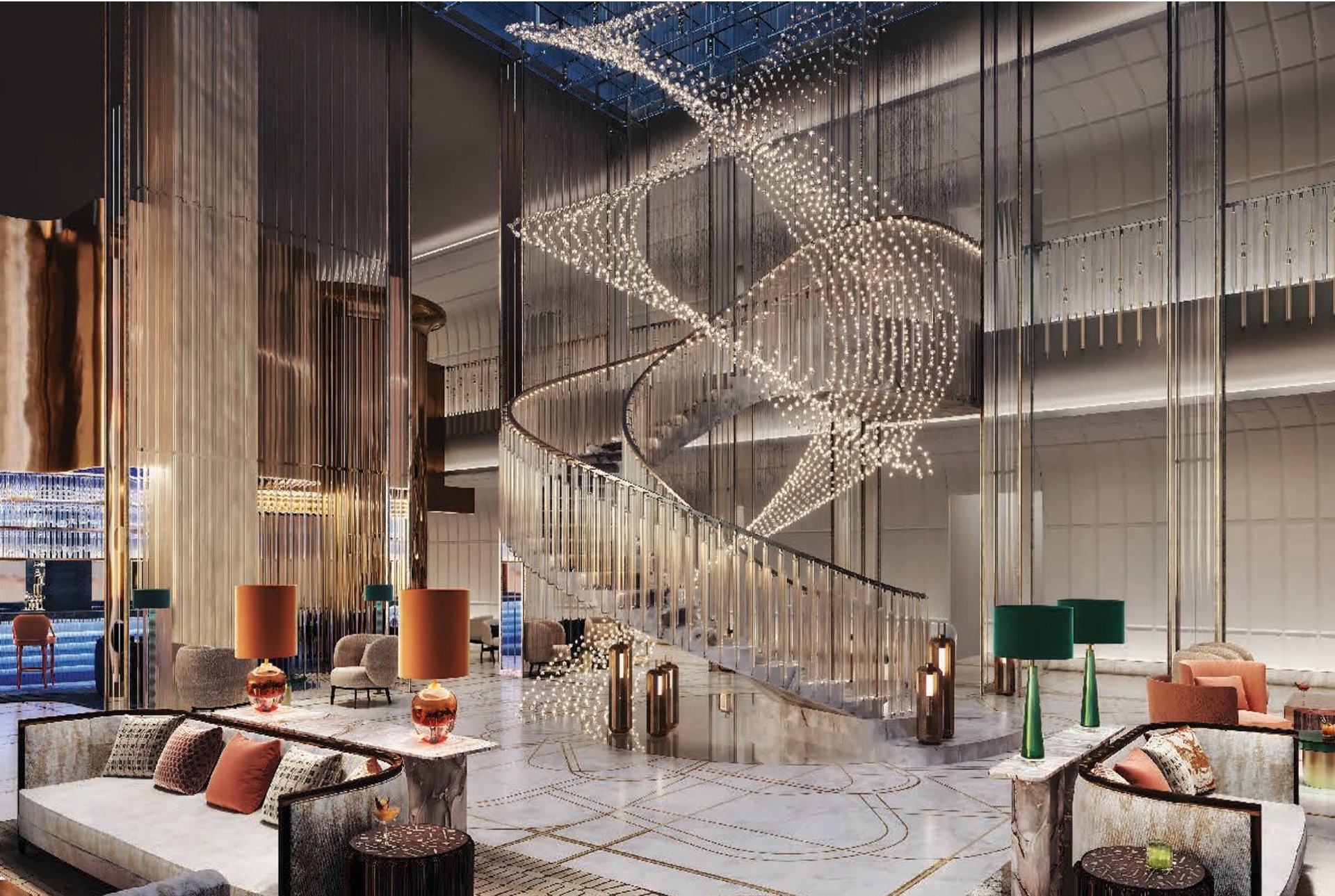 Atrakce: Mezi vybavení a atrakce budou patřit bazény, sauny, wellness centra, kino, posilovny, rezidenční salonky, dětské hřiště a jedinečná pozorovací plošina.