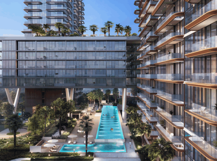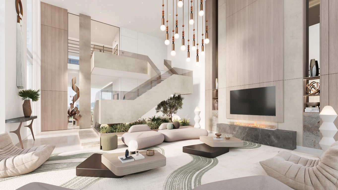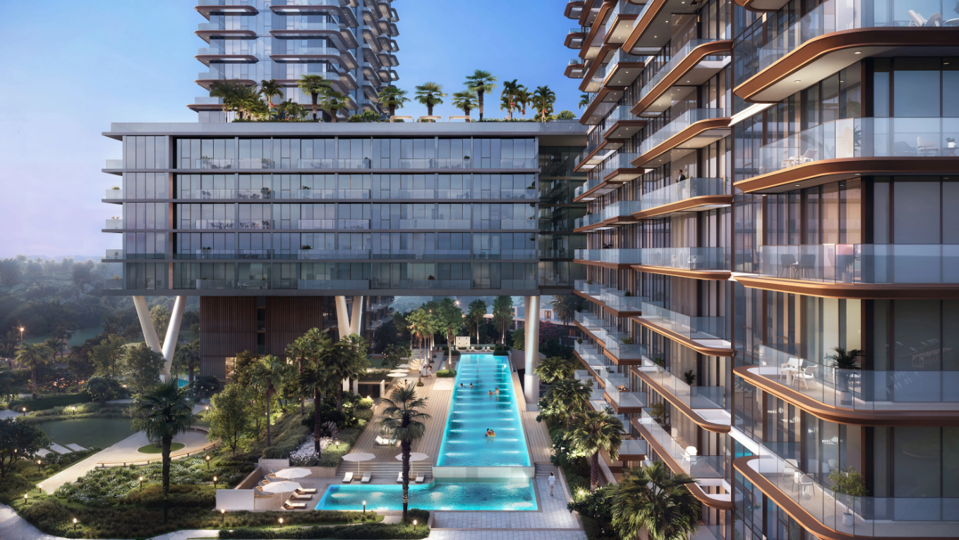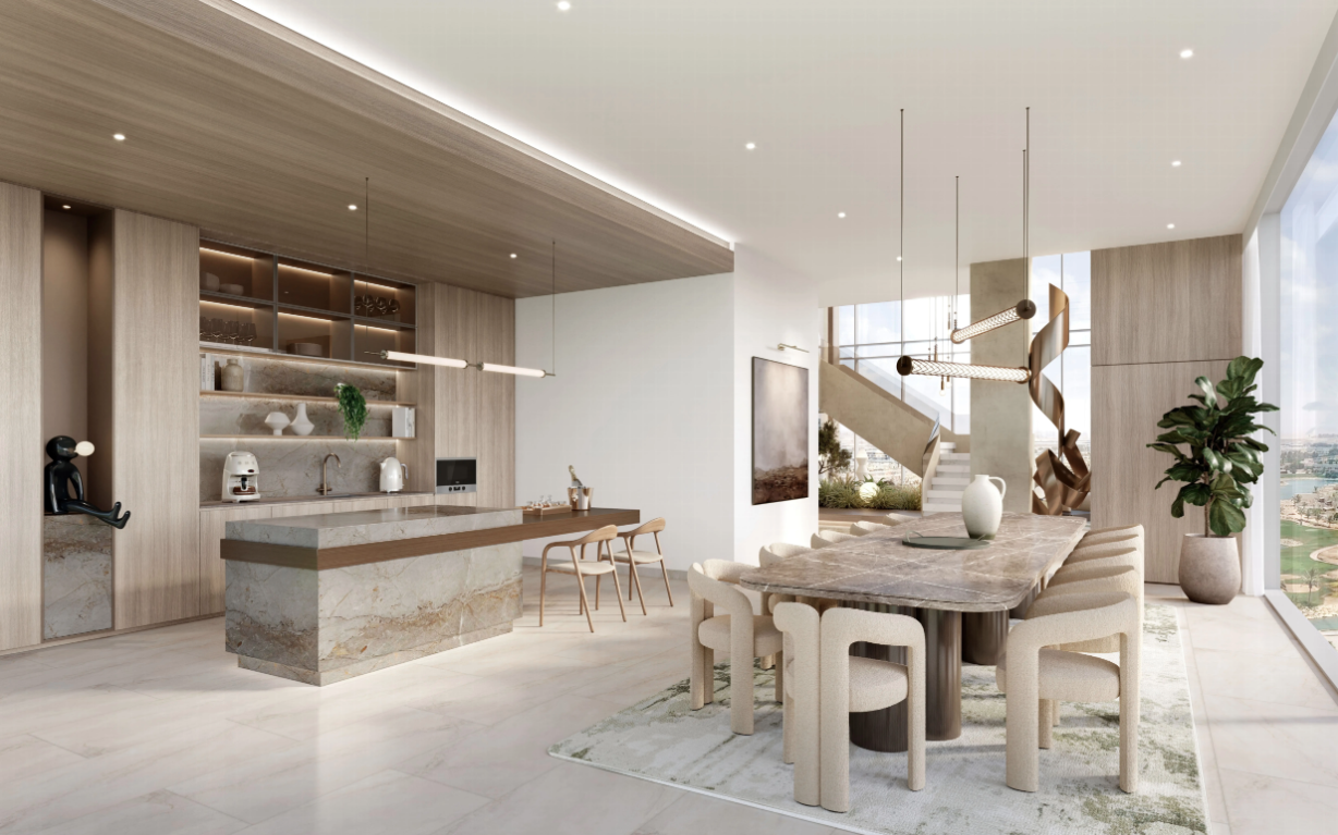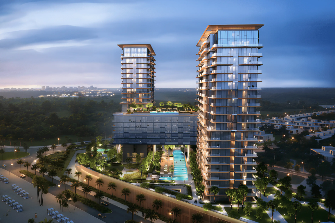 Komplex tvoří dvě elegantní věže spojené ikonickým sky-bridgem, který nabízí panoramatické výhledy na moře a přilehlé golfové hřiště. Celkem zde vznikne přibližně 600 rezidencí, od studií až po luxusní 4-ložnicové penthousy, jejichž interiéry kombinují sofistikovaný minimalismus a přírodní materiály.