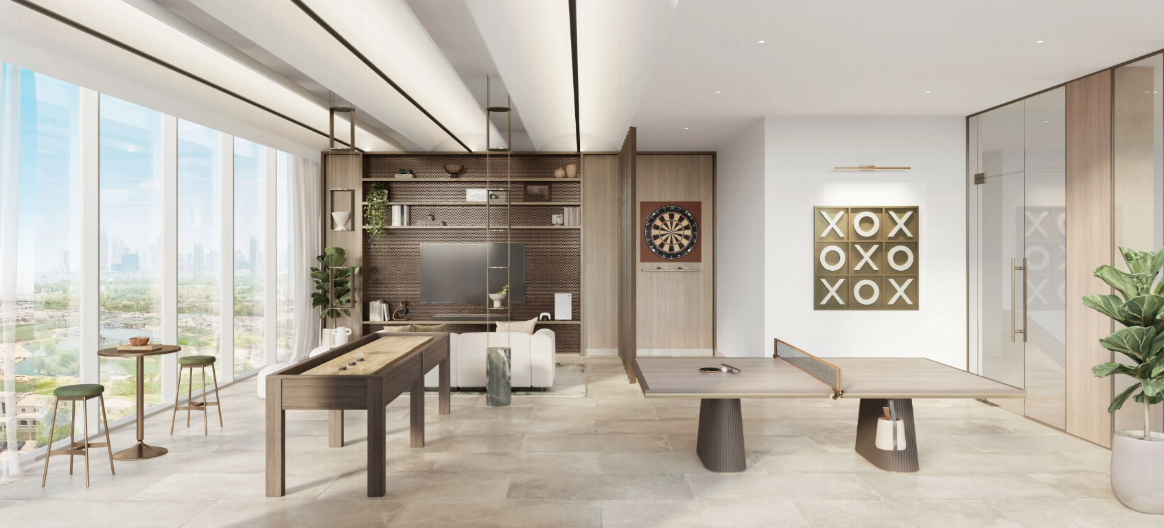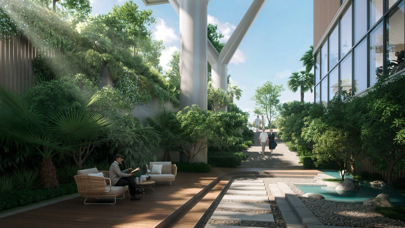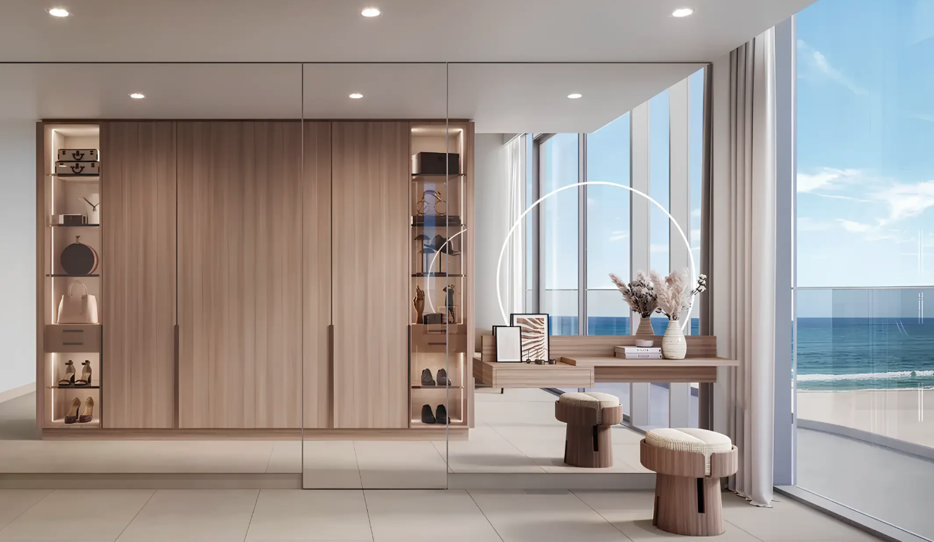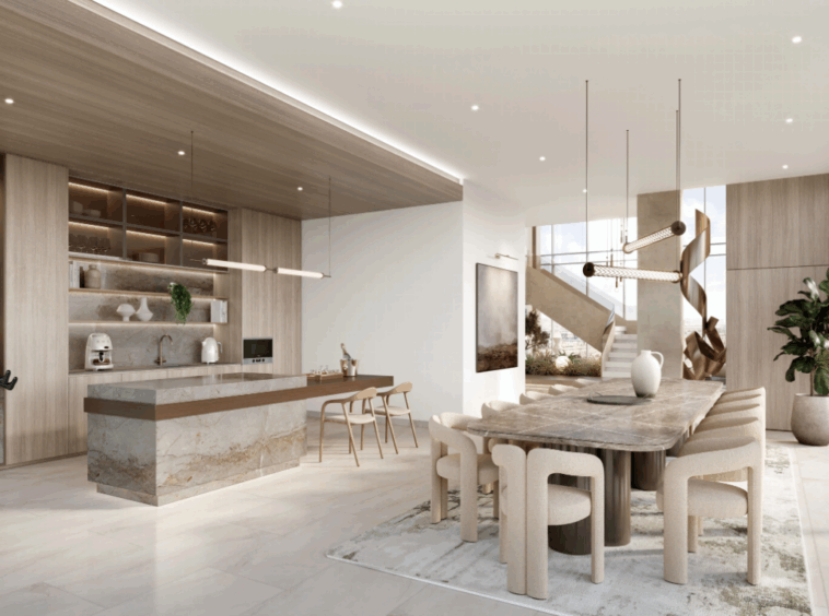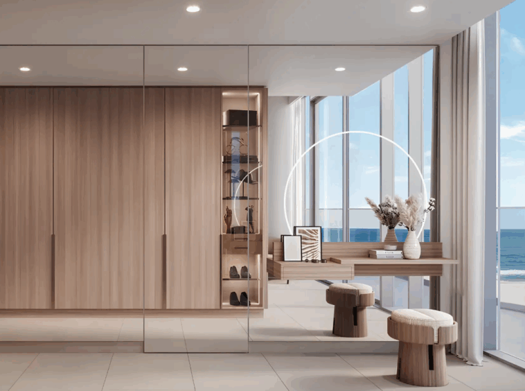Komplex tvoří dvě elegantní věže spojené ikonickým sky-bridgem, který nabízí panoramatické výhledy na moře a přilehlé golfové hřiště. Celkem zde vznikne přibližně 600 rezidencí, od studií až po luxusní 4-ložnicové penthousy, jejichž interiéry kombinují sofistikovaný minimalismus a přírodní materiály.